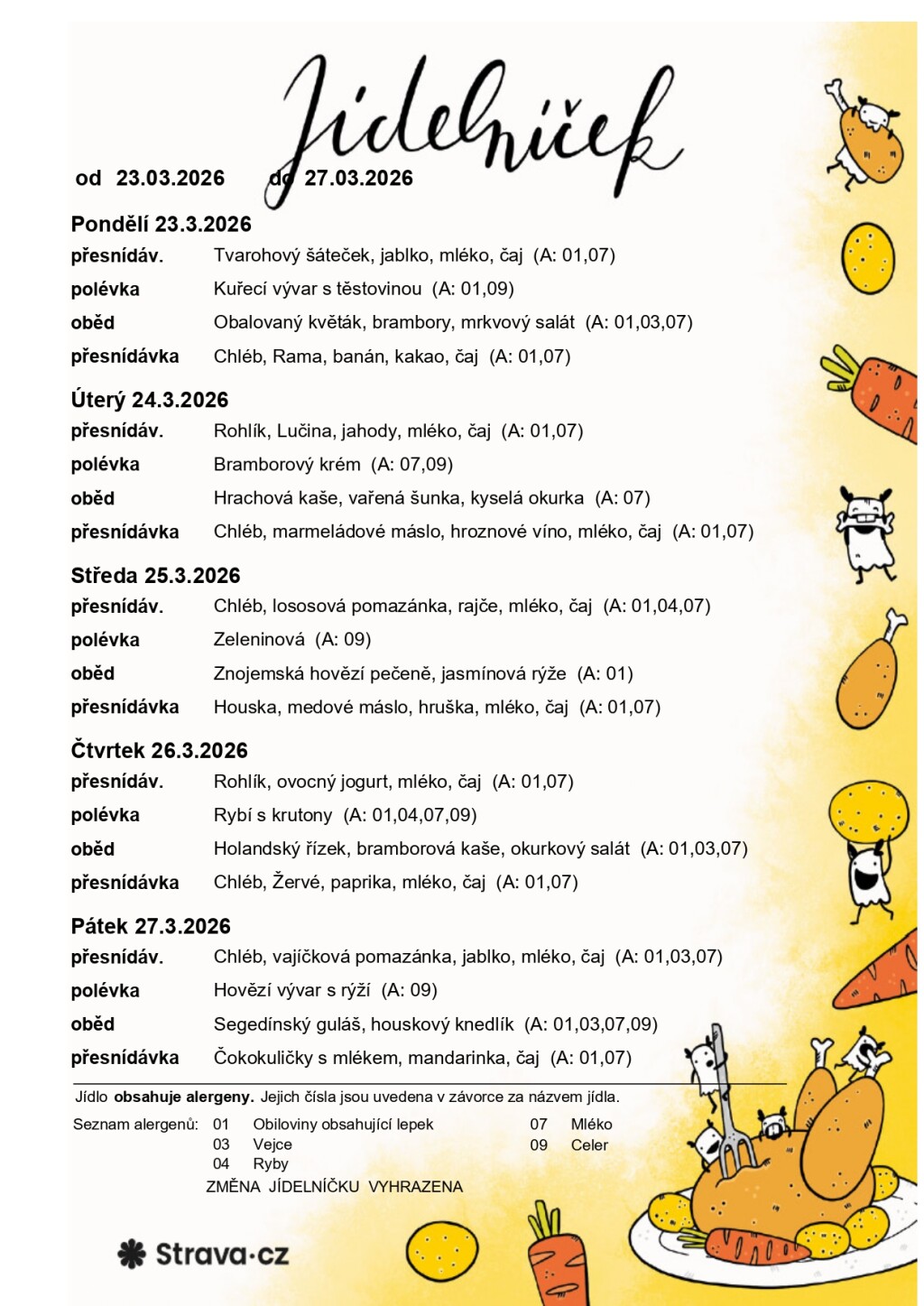 jídelníček 23.3. - 27.3.2026